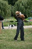 Dans la fourchette taille, masculin, bien typé, bon ensemble, harmonieux, tête bien proportionné, bon parallélisme, bon fourrure et couleur, en légère mue, exc proportion corps, pied un peu long Serre un peu devant, mouvement régulier, couvre bien Excellent caractère